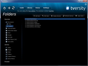 Para añadir contenido a TVersity debes ir a Library. Desde ahí podrás añadir nuevas carpetas y elementos. Para que estos sean visibles, es importante que le des a Refresh Item(s). Recuerda esto porque TVersity no se actualiza solo.